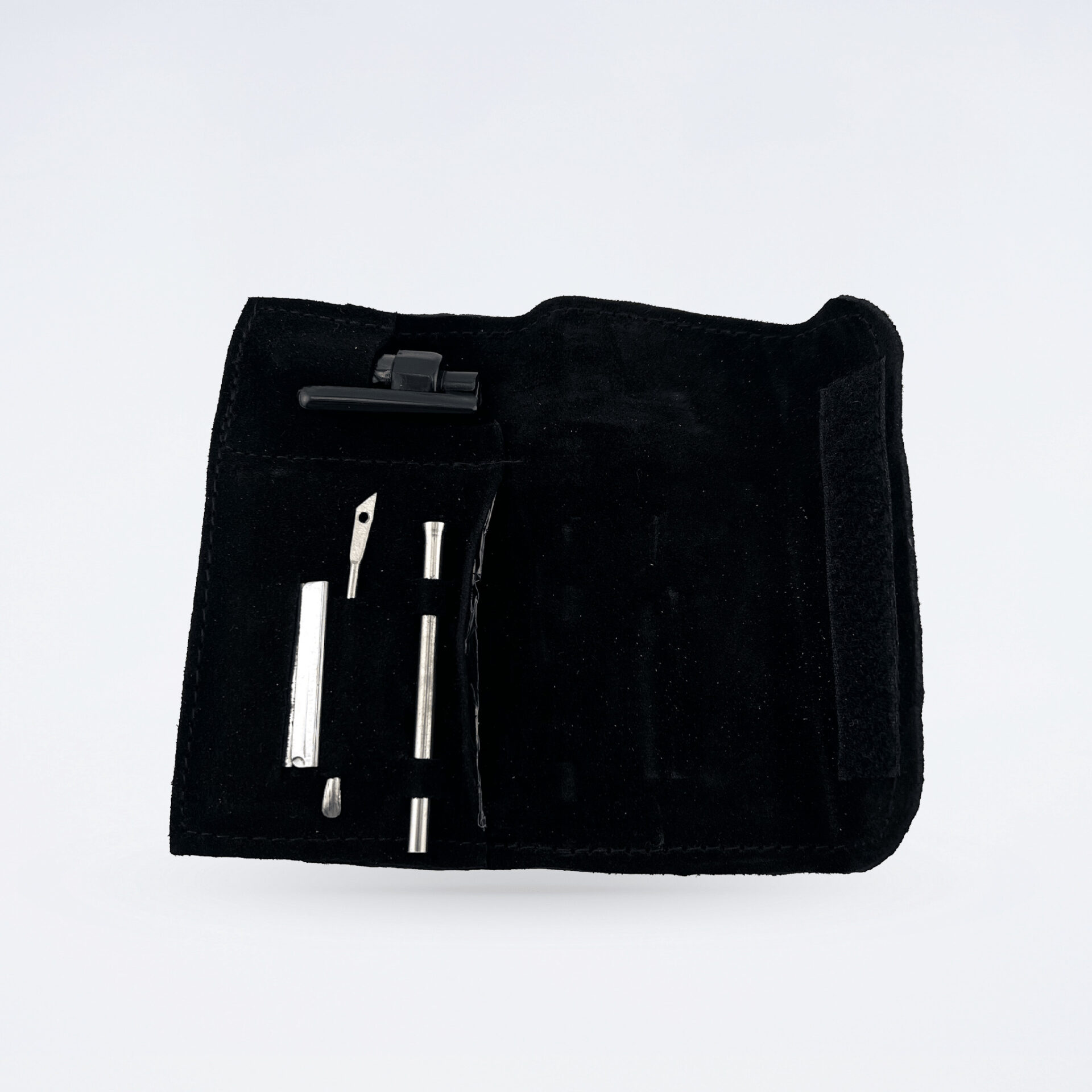 嗅ぎタバコなどの粉末を使用する際に必要なアイテムがすべて揃っており、外出先でもスマートに持ち運べます。